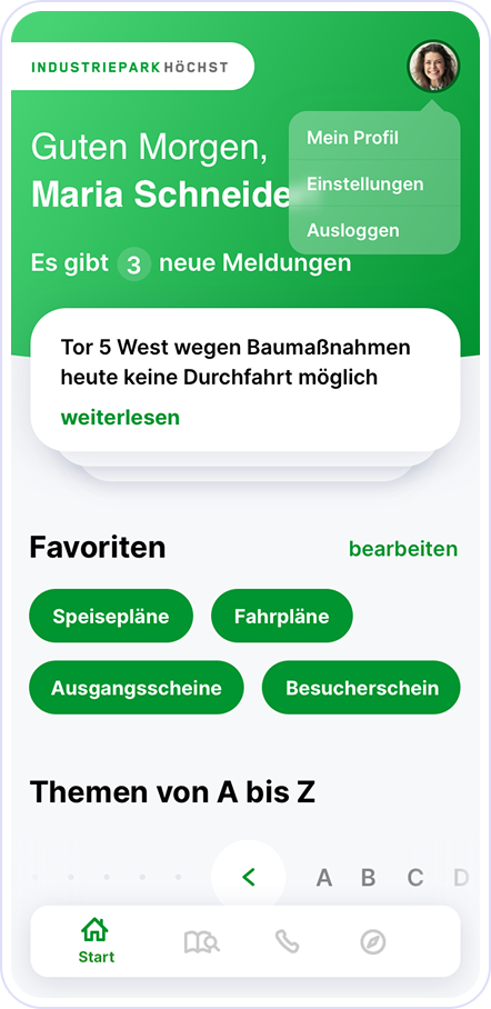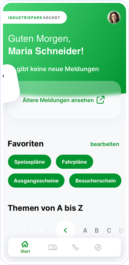 Für mehr als 22.000 Angestellte eines Industrieparks sollte das Mitarbeiter Portal so überarbeitet werden, dass es zu einem nützlichen Alltagstool wird. Das Ziel war es, aus dem rein Desktop optimierten Portal ein nutzerzentriertes und moible-optimiertes Tool in Form einer PWA zu erschaffen, die sich intuitiv von unterwegs bedienen lässt.