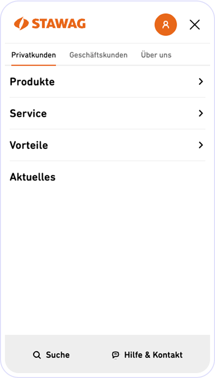 Das neue Navigationskonzept wurde entsprechend reduziert, klar gegliedert und auf die relevantesten Nutzungsszenarien zugeschnitten. Das Ergebnis: eine deutlich übersichtlichere Navigationsstruktur mit einer wesentlich verbesserten Usability in einem barrierearmen Design, das sich nahtlos ins Corporate Design einfügt.